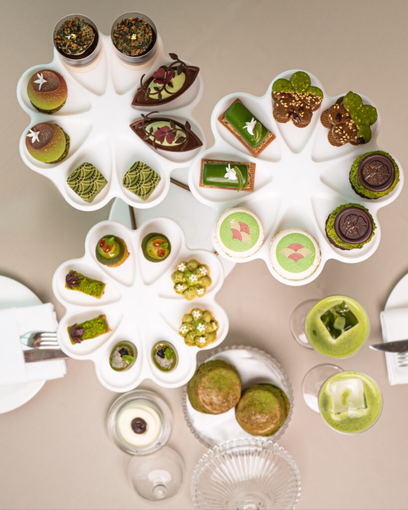Every element of the “Sense of Matcha Afternoon Tea” has been meticulously curated to evoke a deep sense of calm and pleasure. It begins with the savouries with a ‘Deep fried seaweed prawn cake with match mayo and mango gel’ offers a surprising harmony of land and sea, a delicate ‘Duck Rillette Rigatoni with Matcha moss and orange peel gel,’ a sophisticated ‘Sweet miso, edamame mascarpone tartlet,’ while a delightful ‘Matcha yuzu, mango and snow crab’ creation presents a perfect balance of zesty and rich flavours.