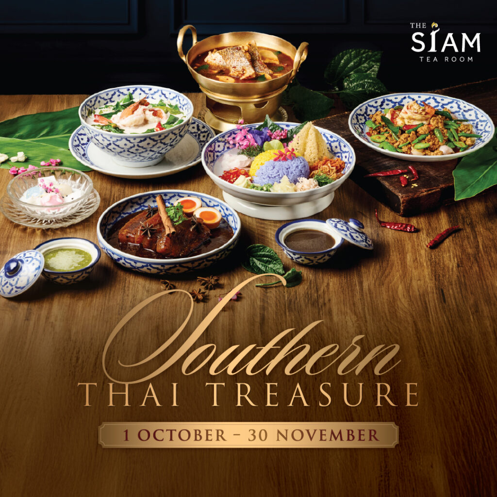 The “Southern Thai Treasure” will be available at The Siam Tea Room for two months, from October 1 until November 30, 2025 (11.00 – 22.30 hrs). Prices start from just THB 230 per dish, and advanced reservations are recommended.