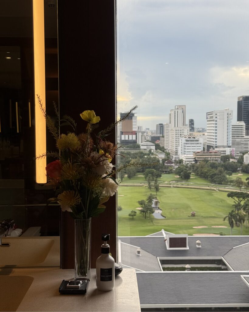 今回滞在したのはヴァーティゴ・スイート。大きな窓から望むシティビューは圧巻で、シンプルでありながら温かみのあるデザインが特徴です。特筆すべきはシーツとマットレスの寝心地。深い眠りを誘う快適さは、これまでのバンコク滞在の中でも最高レベルでした。