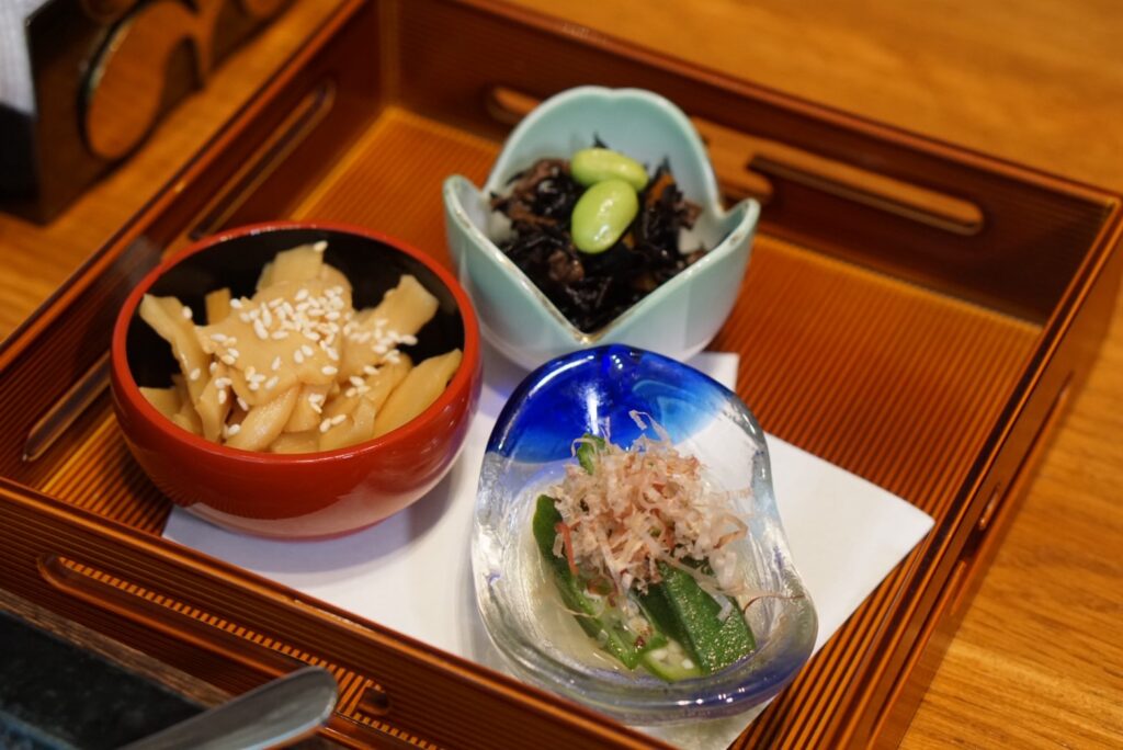 Hiyayako – เต้าหู้เย็น/ Enoki bata – หมูผัดเห็ดเข็มทอง/ Chawanmushi ไข่ตุ๋น เป็นต้น