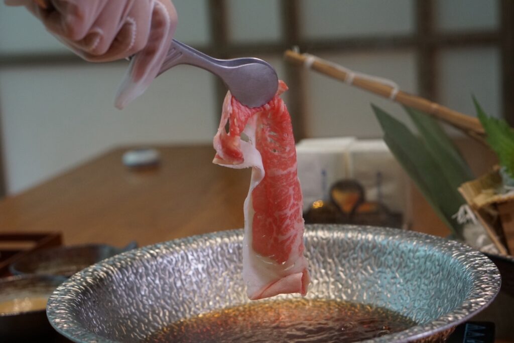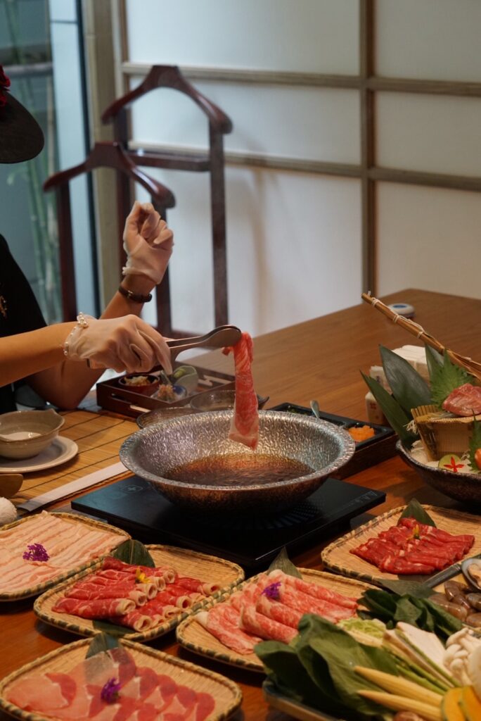 Our chef selects and hand-slices meats to the perfect thinness, allowing guests to gently swirl pork, kurobuta, seafood, or premium imported beef in the simmering broth, creating the iconic “shabu-shabu” sound.