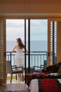 今回滞在した コーナーラグジュアリーツイン(56㎡) は、とても広々としていて、まるで自分だけの隠れ家のような心地よい空間でした。大きな窓からは明るい自然光が入り込み、海を眺めながら過ごす時間は、まさにリゾートステイの醍醐味。