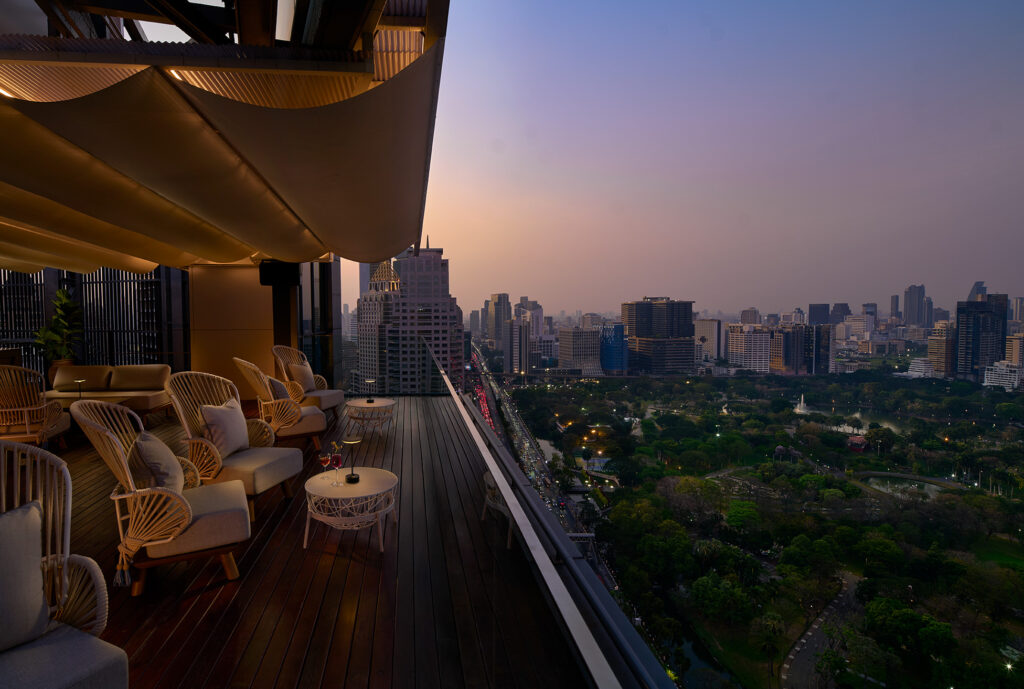 Above Lumphini Park, the experience captures the warmth, light and conviviality of coastal living — evolving naturally from golden-hour dining to spirited evening celebration. Designed for discerning city residents and international travelers alike, the destination offers a contemporary meeting place where Riviera ease meets Bangkok energy.