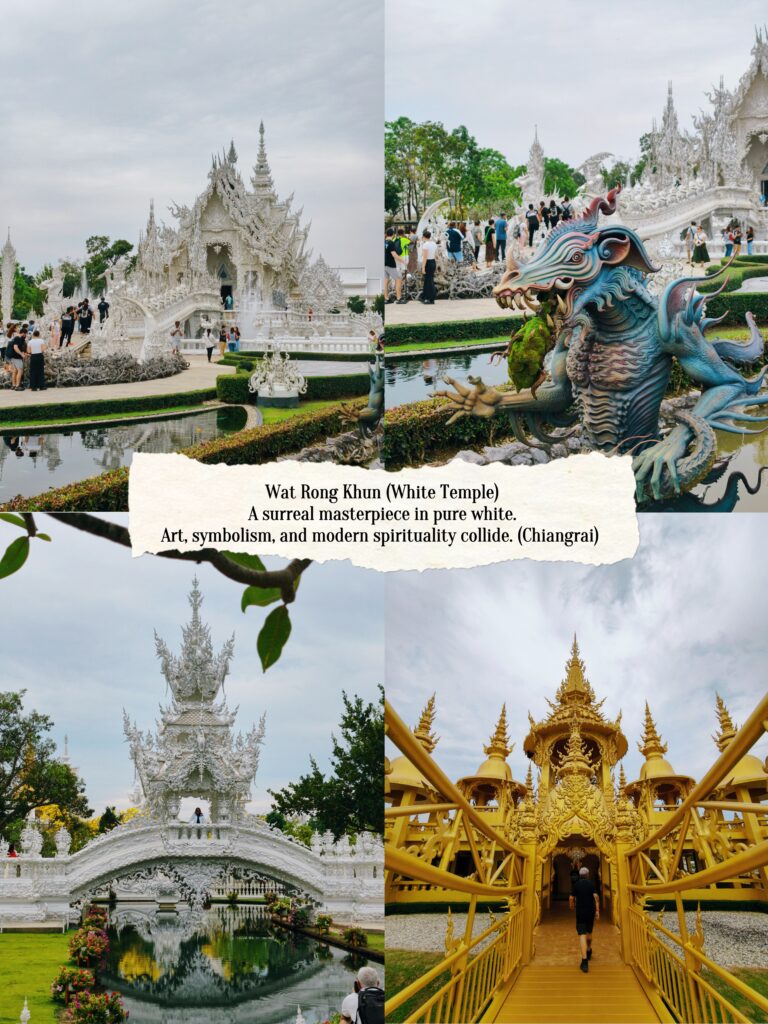 No journey through Northern Thailand feels complete without seeing Wat Rong Khun, also known as the White Temple. Its luminous white façade and mirrored detailing create an almost surreal visual impact, blending contemporary artistic vision with Buddhist symbolism. While it is one of the region’s most visited landmarks, it still leaves a powerful impression when seen in person. The temple feels less like a conventional monument and more like a living work of art.